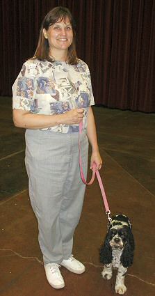 It was fun seeing a few people we know there. I even got to meet one of my Internet friends in person. This is Connie Kimble (and her dog Sheila) from Tashecon Cockers in Sacramento. She was there for the obedience events, not conformation. I had never met her before in person, and did not recognize her when my wife and I walked by. But as we were passing her in the hall she said "Mr. Zim?!?" It was fun to talk to her in person rather than in email because she is so full of life and energy in person! It makes me wonder how many more of my Internet friends are way more fun in person than they seem on the computer!